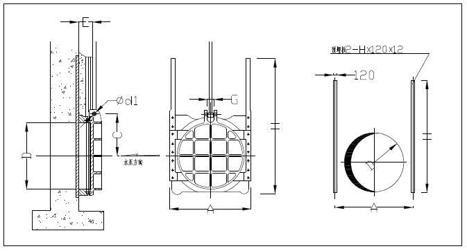 1、閘門應按圖示位置安裝、閘板設於迎水麵;
