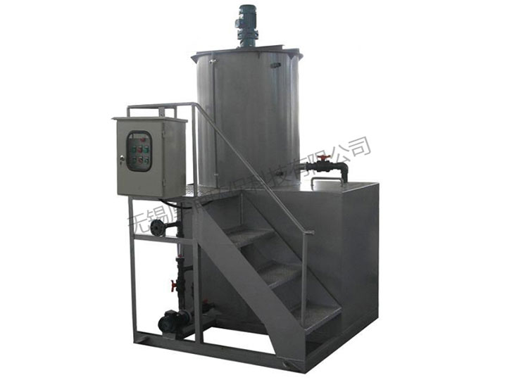 配製溶液從配製槽經熟化槽再進入儲存槽,當儲存槽液位處於高位時,配置過程自動停止,加藥液過程繼續,當溶液下降到中液位時,重新自動啟動配料過程。配製槽和熟化槽均設置攪拌器,充分保證絮凝劑的稀釋和熟化。另外,儲存槽溶液不足時會觸及下液位報警係統,所有係統均停止並報警。本裝置是由具有自動化程度高、性能穩定、工作可靠、操作簡單等特點。